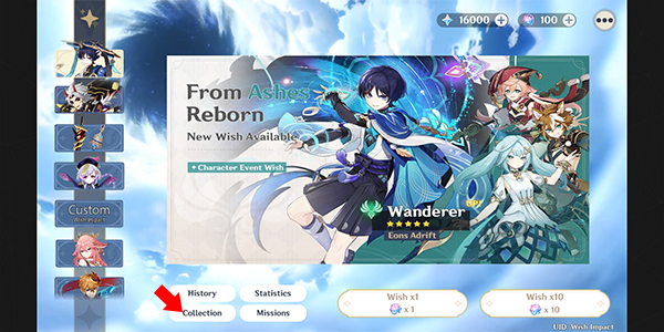 - 点击“十连抽”按钮,即可享受流畅逼真的抽卡动画;若想查看已有成果,只需点击卡池下方的 Collection(图鉴) 选项,所有已获得的角色与武器一目了然。