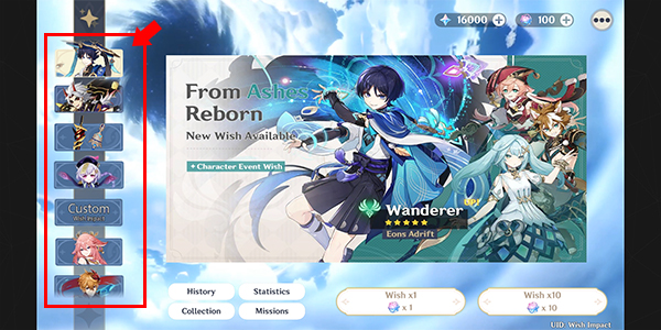 - 进入主界面后,在左侧选择你感兴趣的卡池类型(如限定角色、常驻武器等)。