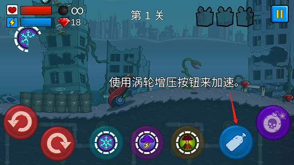4、车辆默认自动行驶,点击右侧“涡轮增压”按钮可实现短时爆发加速;