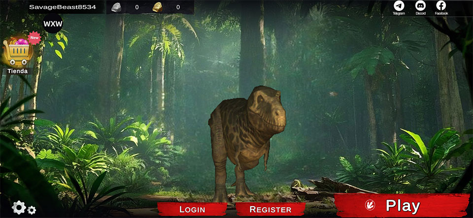 进入游戏后,可选择登录、注册账号,或直接点击“Play”快速开始。首次游玩默认操控霸王龙,即刻开启你的史前求生之旅。