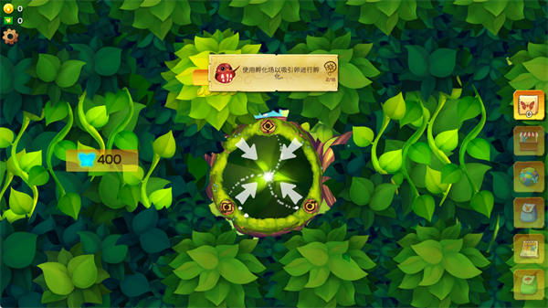 进入孵化界面,使用孵化场功能吸引并收集蝶卵,这是开启蝴蝶养成之旅的第一步。