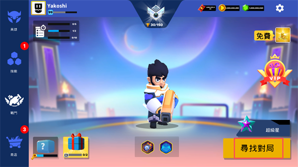 在主界面确认当前英雄、等级及资源后,点击“寻找对局”,即可快速匹配进入3v3或其他模式,开启4分钟高强度对决。